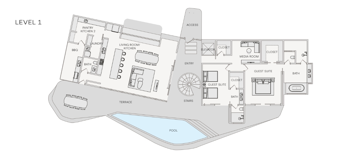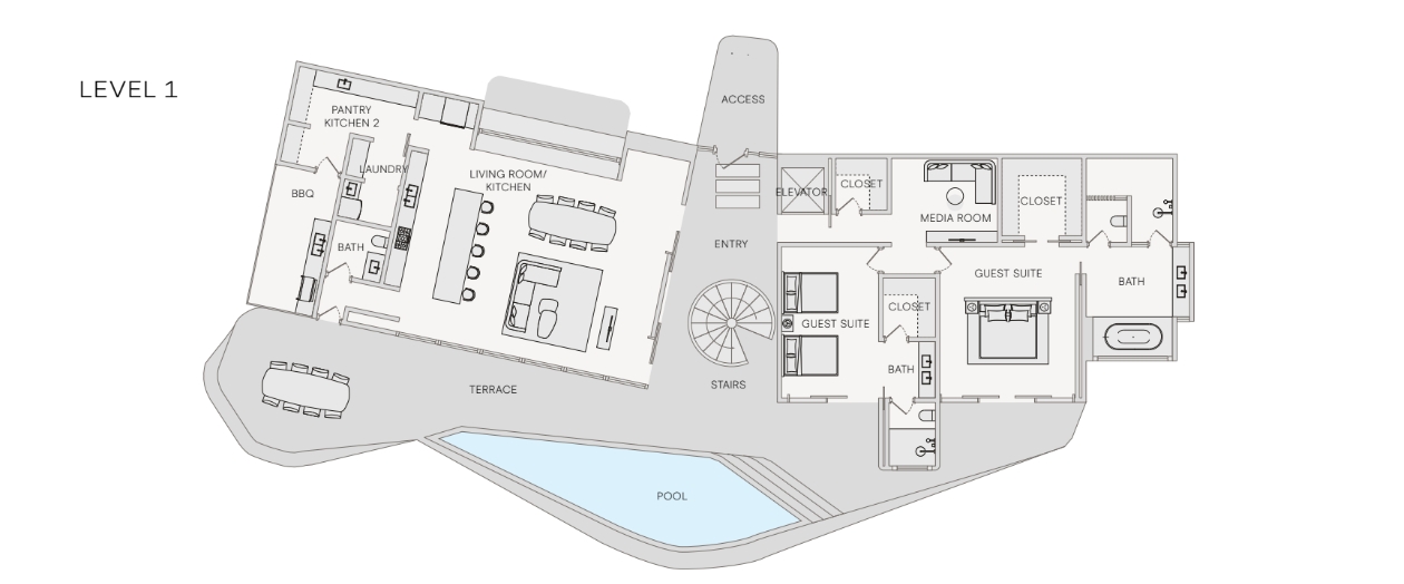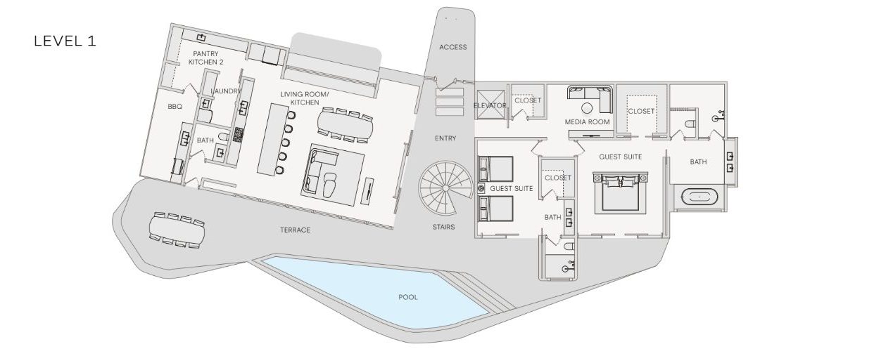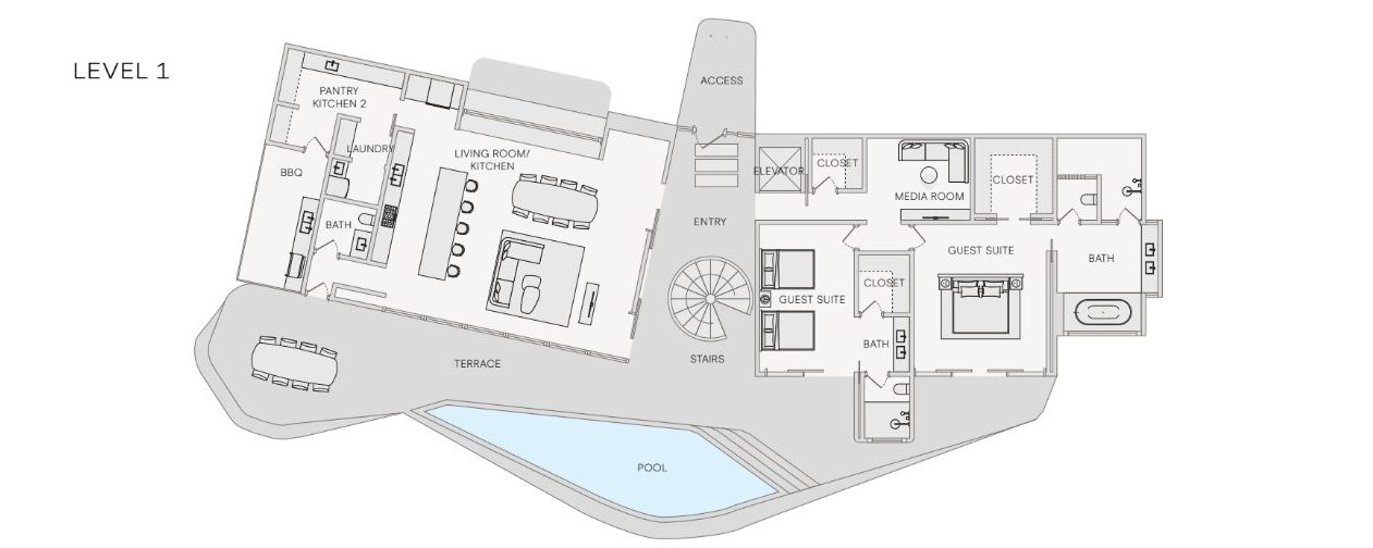 - Fully furnished 4–5 bedroom estate homes with private ocean-view pools